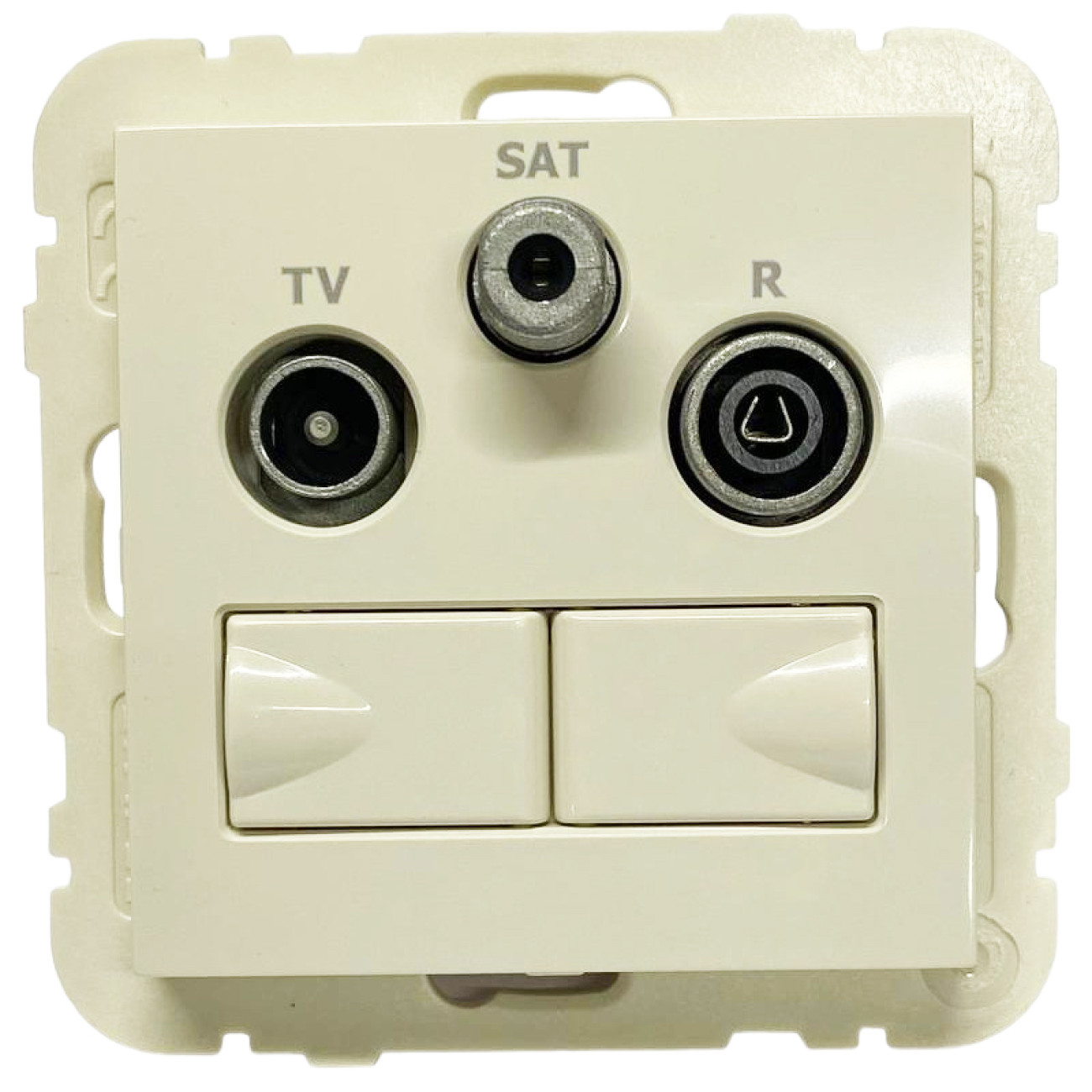 Питання та відповіді (FAQ) Розетка мультимедійна R-TV-SAT-2xRJ45 (Cat.6) подвійна, слонова кістка 21546 TMF