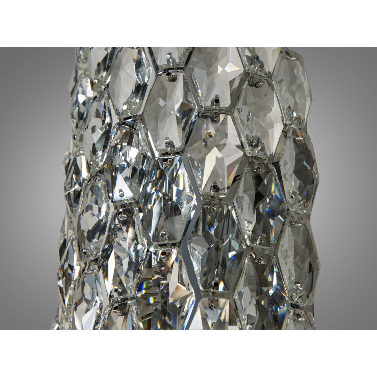 Світильник складається з каскаду блискучих кришталевих елементів, які плавно спускаються, створюючи враження заморожених світлових струмків. Хромоване покриття підкреслює сучасний стиль, роблячи його ідеальним вибором для будь-якого інтер’єру.